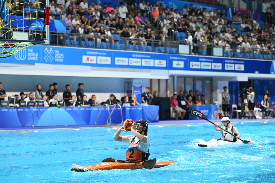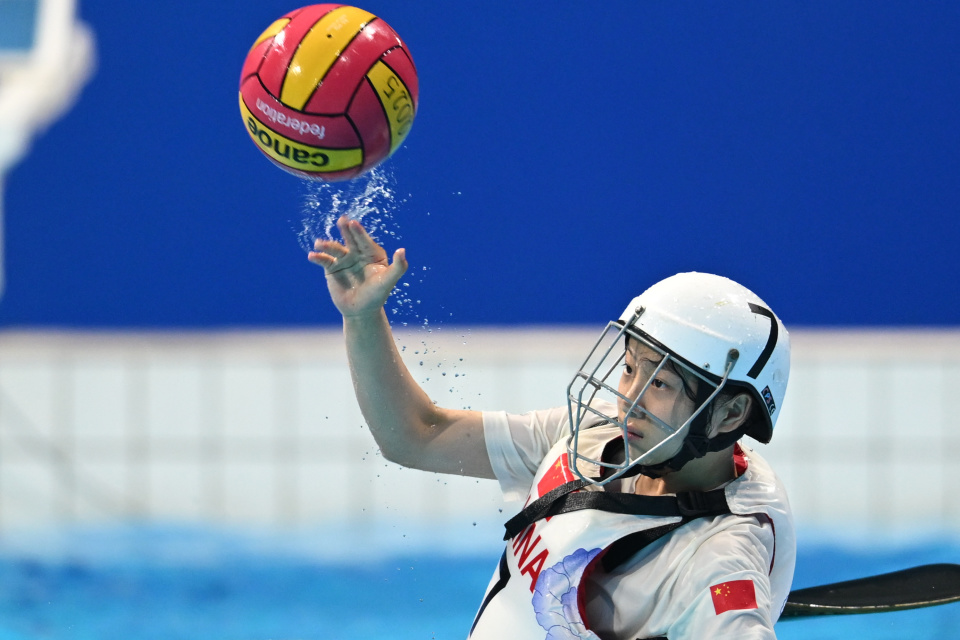 当日,在2025年成都世运会皮艇球女子四分之一决赛的比赛中,中国队1比19不敌荷兰队。8月15日,中国队球员巢语佳在比赛中进攻。新华社记者 陈振海 摄